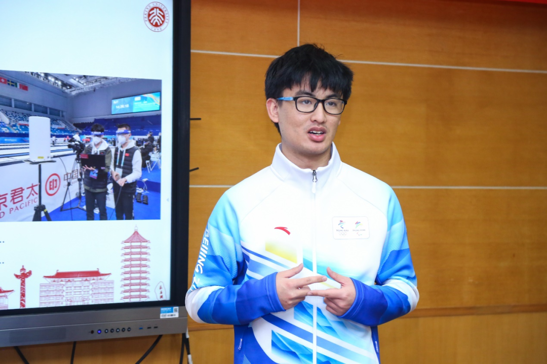 2020级本科生徐致远介绍了测试赛期间他在赛事服务领域的工作与体悟。测试赛是一场世界轮椅冰壶锦标赛,更是为冬奥顺利举行、对冰立方场馆运行的一次预演,是对场馆运行与服务保障的一次重要考验。他对即将到来的正赛十分憧憬,希望能继续认真踏实地完成志愿服务工作,为冬奥的完美呈现而努力。