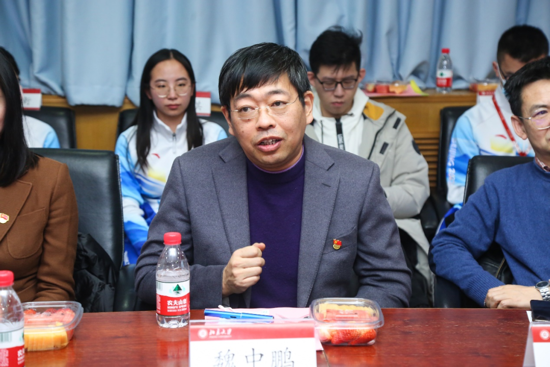 魏中鹏结合习近平总书记讲话精神向同学们阐明了国家举办冬奥会和冬残奥会的深远意义,并对同学们作为志愿者提出四点希望:第一希望大家充分了解奥运的精神和意义,作为遴选出的优秀的志愿者,要对“绿色、开放、共享、廉洁” 的办奥理念加深理解。第二是希望同学们是要充分发挥自己的优势,在志愿服务中通过服务展现出北大青年的素质品质。第三是要规范服务工作,遵守相关的规定,认真参与培训并实践。第四是要注意安全规范,他指出:遵守防疫规定,不仅是自身安全要求,更是冬奥整体安全运行的保证。最后,魏中鹏寄语冬奥志愿者:奥运精神薪火相传,希望同学们做奥林匹克精神的宣传员,在赛会内外将冬奥代表的冰雪文化与体育精神发扬光大。