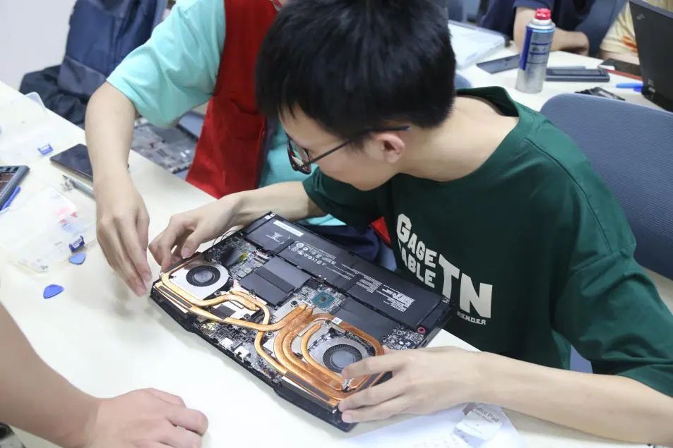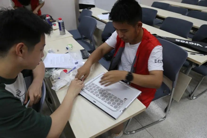 下午250讲座结束,本次活动的电脑维修开始了,志愿者们领取维修物资:螺丝刀、翘片、收纳盒、酒精棉片等。大家各自接单,耐心解决客户的清灰、换硅脂、清理内存等电脑问题。志愿者们也都互相帮助,热心解答客户们提出的一些有关电脑基础知识和电脑故障的问题,让参加活动的同学电脑知识都有所提高。维修中志愿者们遇到了一些难以处理的问题,大家通过现场学习、细心琢磨把它们逐一攻克。活动后,同学们都对此次服务表示满意。