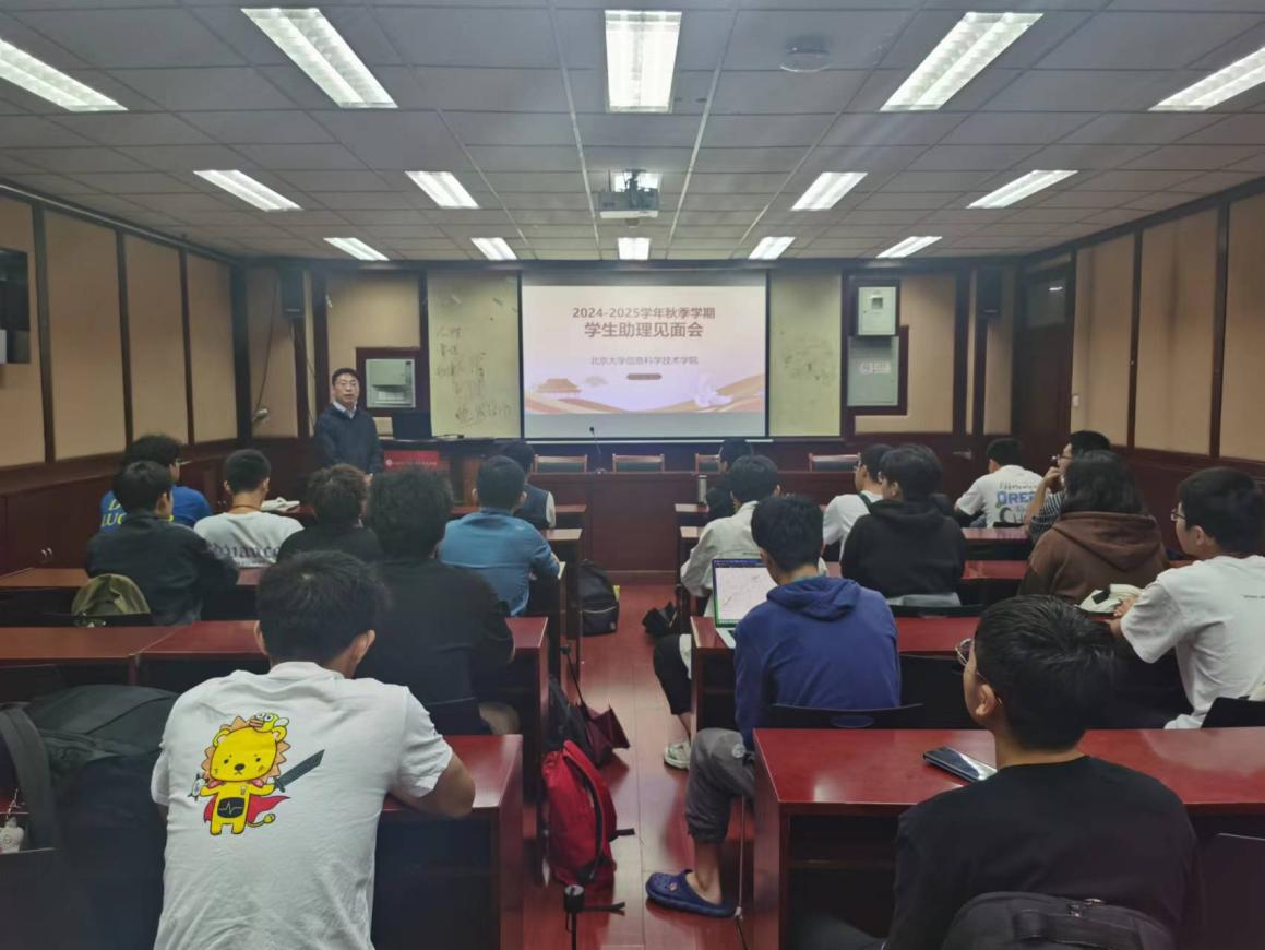 (本科生学院)在理科一号楼1131会议室召开2024-2025学年秋季学期学生助理见面暨培训大会。学院党委副书记贾方健、学工办主任李子奇、学工办干部付晓倩和本学期的学生助理们参加了面谈。