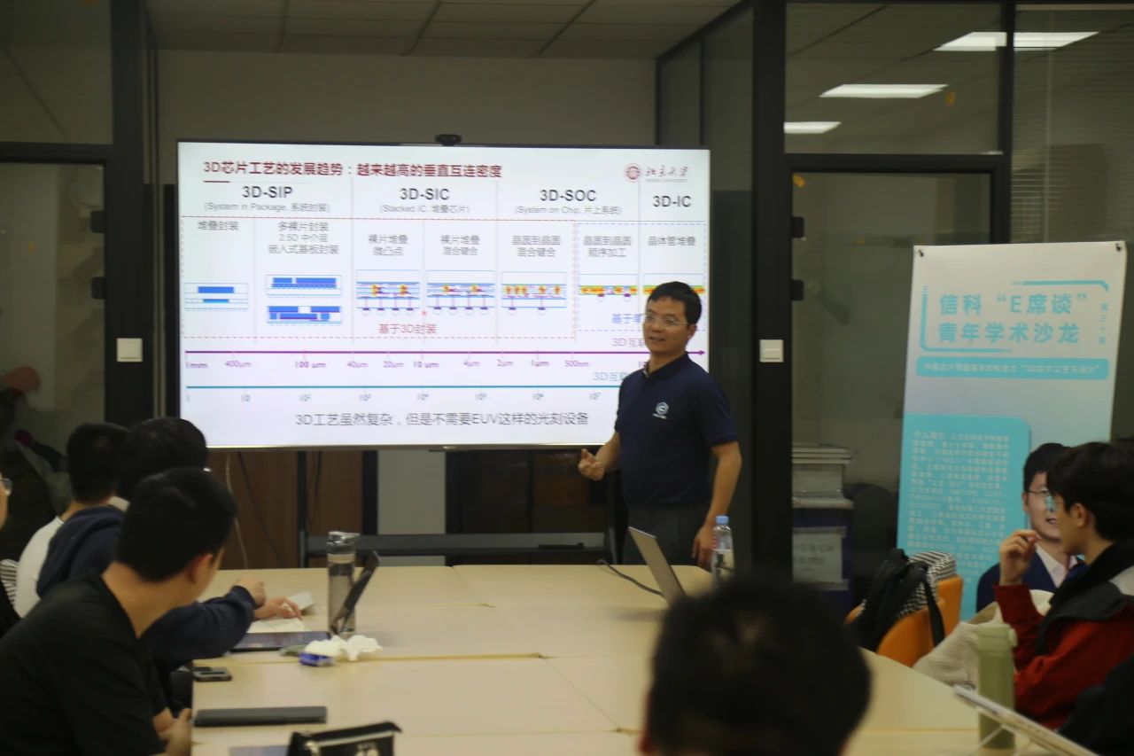 2025418日晚,信科“E席谈”青年学术沙龙第三十期活动在理科一号楼1127学生活动室顺利举办。北京大学电子学院助理教授、博士生导师、博雅青年学者陈荣梅老师受邀进行了以“中国芯片弯道超车的机会之‘3D芯片工艺与设计’”为主题的分享。本次沙龙由学院青年志愿者协会蒋康悦同学主持,院团委书记吕媛老师参加了本次活动。