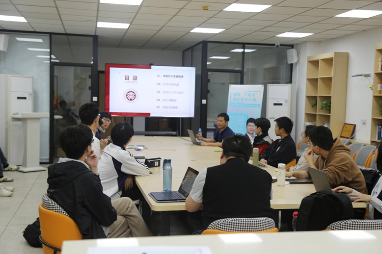 接着,陈老师切入3D芯片的主题。他指出,与传统二维芯片技术相比,3D芯片具有显著的性能优势。在二维技术逐渐达到极限的情况下,3D芯片技术的发展空间巨大。而且,3D芯片设备技术封锁管控力度相对较小,我国有望借此实现高端3D芯片的“弯道超车”。陈老师进一步详细介绍了3D芯片的具体技术优势,例如3D存储堆叠设计,可以有效降低缓存延迟时间,同时提升缓存容量。他还介绍了现阶段AMD、英特尔、台积电等国际知名公司在3D集成技术方面的应用情况,让同学们对3D芯片的现状有了更清晰的认识。