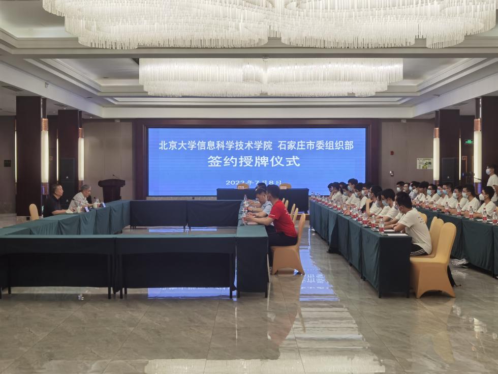 与中共石家庄市委组织部共建“北京大学思想政治实践课程教育基地”签约授牌仪式隆重举行。石家庄市委常委、组织部长罗利对信科思政实践团师生们表示热烈欢迎。信科学院院长侯士敏与石家庄市委编委办主任、市委组织部副部长兰国良共同签署合作协议。校地双方共同开启首次思政实践课程之行,也共同见证了北大信科与石家庄携手开启新的合作篇章。