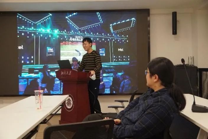 下半场,宋晨浩同学和各位分享了前日参加英特尔新品发布会的见闻,介绍了半导体行业热点和人工智能时代芯片设计、封装的新技术、新趋势,比如在消费级硬件上通过专用加速模块运行大语言模型等。台下同学就此展开了热烈讨论。