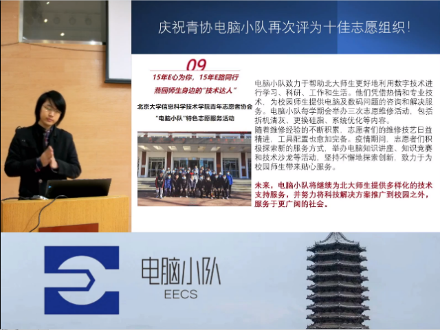 为庆祝信科青协电脑小队荣获“北京大学十佳青年志愿服务项目”,信科电脑小队和计算机学院计算机小队,在校团委的指导以及两家学院团委支持下,联合计算中心和极客实验室,特别策划了“冬日电脑守护计划”活动。