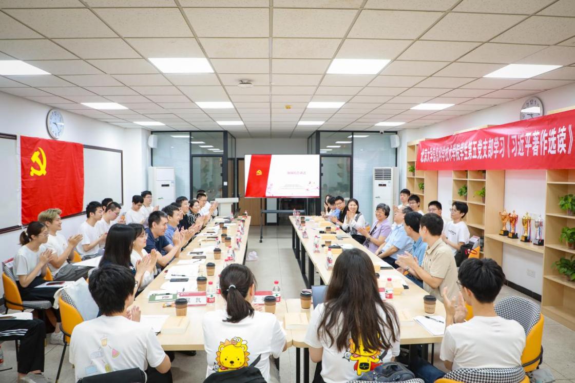 学生第五党支部在学院学生创新活动空间开展学习《习近平著作选读》读书会。教育部高校党建工作联络员、清华大学党委原副书记韩景阳受邀到会指导工作。北京大学党委常委、副校长张锦出席会议。