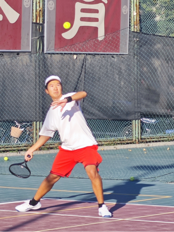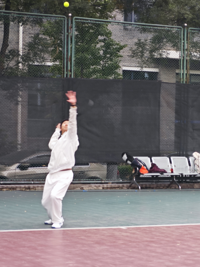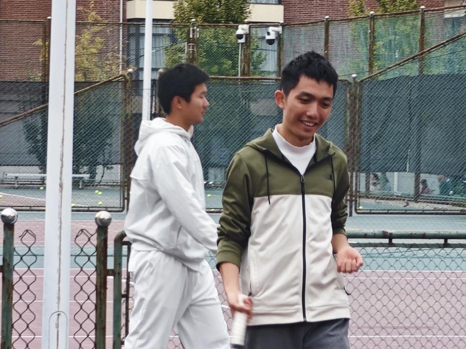 信科一队和医学一队的网球比赛在中午开始进行。即使是中午,天气也十分寒冷阴沉。
