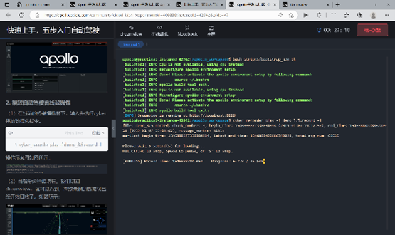 然后,苏菲菲带我们在Apollo开发者社区里体验了模拟的路况行驶分析,教同学们掌握Apollo交互系统Dreamview的启动方法以及使用cyber调试工具打开数据包的方法。感兴趣的同学可以进入apollo.baidu.com加入课程学习。