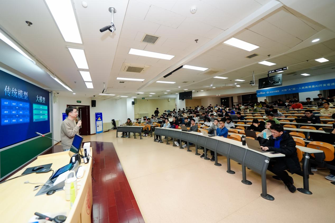 第三十三期“知存讲座”暨信息科学前沿与产业创新课程在理科教学楼107教室顺利举办。百度文库AI产品负责人钟昊先生受邀进行了以“AIGC:内容无界”为主题的报告。集成电路学院助理教授、博士生导师林亦波主持了本次讲座。