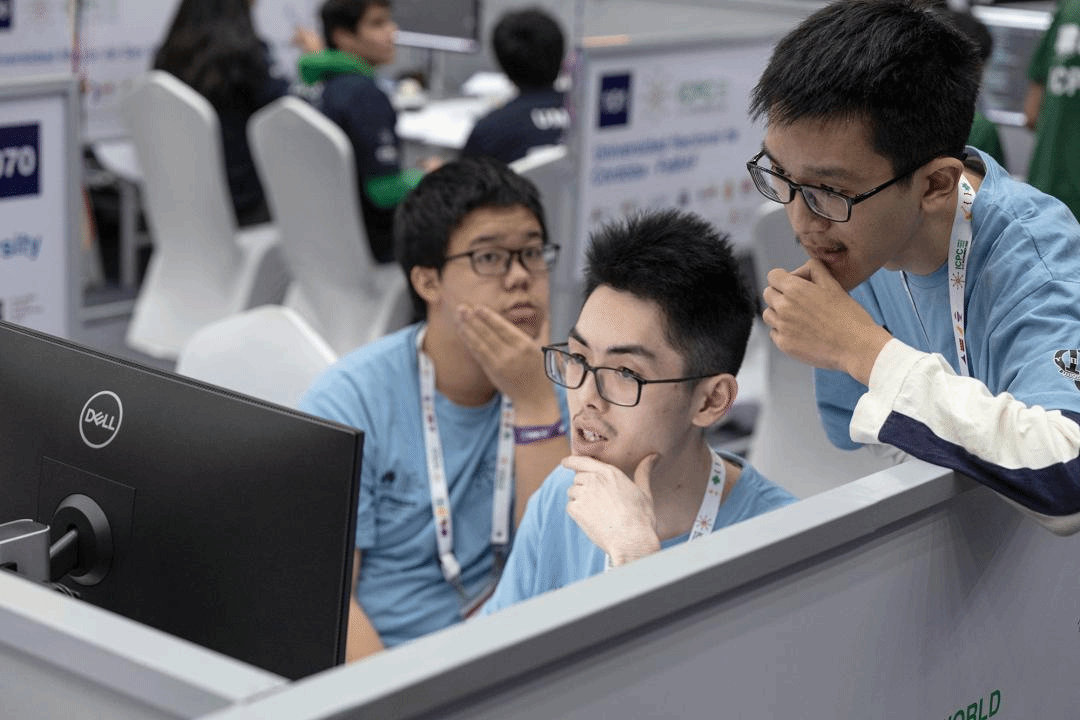人声嘈杂的考试场地,三人共用一台电脑,五个小时解决十道题目……国际大学生程序设计竞赛全球总决赛(ICPC World Finals)中,由北京大学周雨扬、孔朝哲、潘骏跃三名同学组成的队伍鏖战正酣,向全球金牌冲刺。