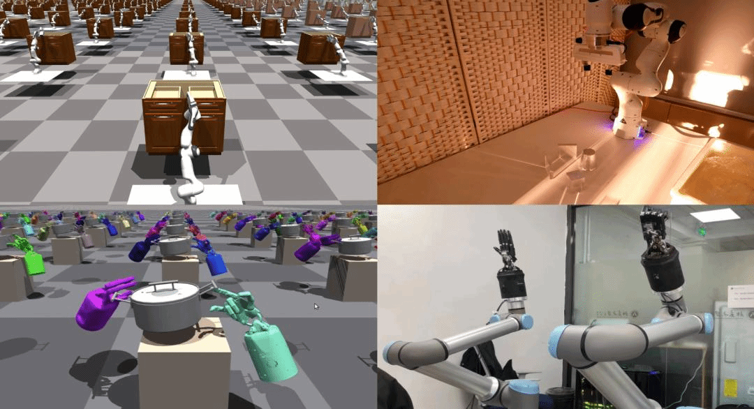 机械臂与灵巧手在虚拟环境和真实世界中进行训练与测试