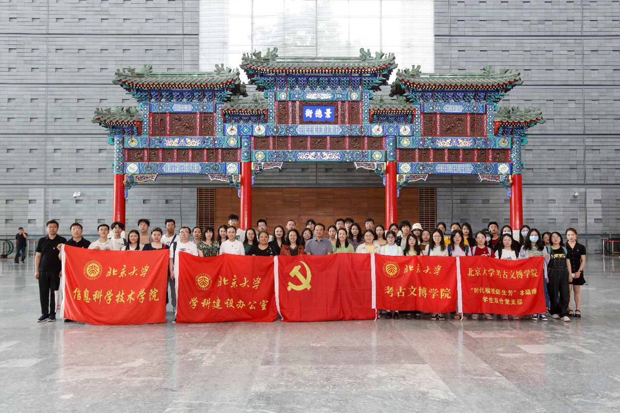、考古文博学院一行到达首都博物馆,首都博物馆党委书记、馆长韩战明等热情接待了北京大学各共建单位师生,并在首博大厅“镇馆之宝”景德街牌楼前合影留念。