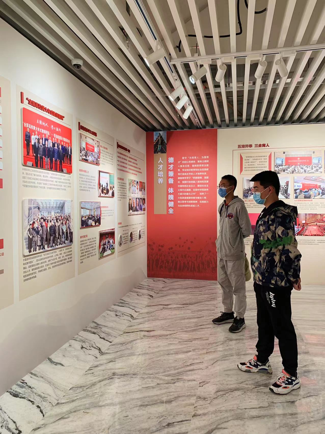 展览以学校近十年来发展建设的重要时间节点和重大事件为主线,设置了“习近平总书记的亲切关怀”“加强党对学校的全面领导”“推进马克思主义理论学科领航”“人才培养:德才兼备,体魄健全”“‘冰新一代’冬奥风采”等专题模块,以翔实的数据、丰富的图文影音等材料,展现了新时代以来,在习近平总书记的关怀和习近平新时代中国特色社会主义思想的科学指引下,北京大学改革发展取得的累累硕果。师生们依次进行了参观,在展厅内驻足讨论,为我校取得的里程碑式发展成果感到精神振奋、备受鼓舞。
