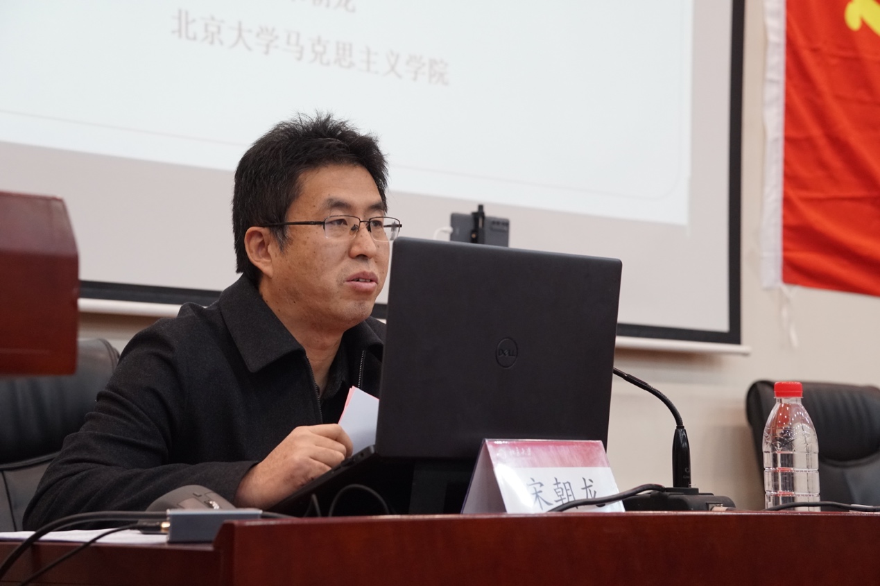 宋朝龙带领参会人员共同深入学习党的二十大报告,为大家带来了主题为“西方百年未有之大变局下中国式现代化道路的世界历史意义”的精彩讲授,以该主题为切入点,深入探讨了党的二十大报告的重要意义。在讲授中,宋朝龙将西方金融资本主义主导的市场经济和中国公有制主导的市场经济进行对比,从西方百年未有之大变局的根源、中国式现代化道路的制度结构与功能、中西现代化道路相生相克的发展、人类文明发展谱系中的中西现代化道路、中国式现代化道路引领人类文明新形态等五个方面具体探讨了中国式现代化的深刻含义。