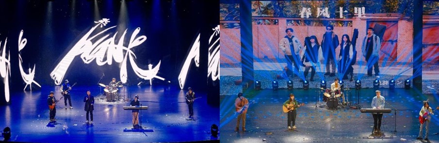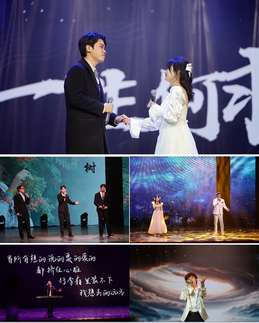 晚会上,涵盖歌舞、戏曲、短剧、魔术等多种表演形式的16个精彩节目陆续上演,节目既融汇了当下流行元素,也同时展现了信科特色,内容丰富,精彩纷呈。紫气东来乐队带来的歌曲串烧《去静止的海边跳舞吧》以激情澎湃的摇滚乐点燃全场,轨迹乐队带来的歌曲《春风十里》则将万象更新的春意寄托在歌声中传遍整个会场。尹骄洋、冯相晔同学以歌曲《鹿Be Free》,带全场观众回顾心底的童真,传递前行的力量,梁永健和冯雅琪同学演唱的《一生何求》以动人的旋律引大家思索一生所求之物,而桑钰超、郭景行、肖旸同学带来的歌曲《山楂树》则引同学们走进青春的纯真美好。吴宗翰同学和陈可同学分别演唱了《牧马城市》与《舟》,以悠扬的旋律和动听的歌声触动着全场观众的内心。