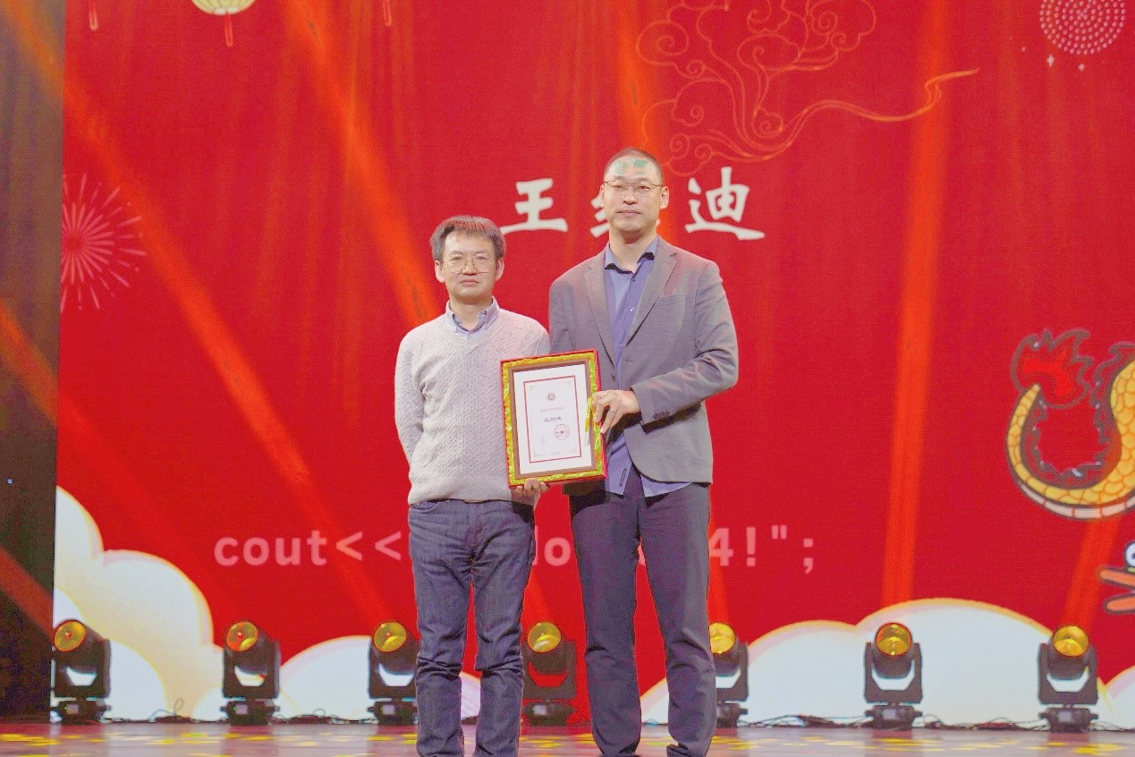 涌现出一批卓越的同学,为推进“三全育人”,晚会进行了国家奖学金、五四奖学金获得者颁奖仪式,鼓励大家向优秀同学学习。晚会现场还宣读了首批国家自然科学基金青年学生基础研究项目及北京市自然科学基金本科生“启研”计划项目支持的同学名单。此外,晚会现场还为北京知存科技有限公司创始人、CEO王绍迪颁发“北京大学优秀校友”纪念牌,感谢他近年来对学校、学院发展的支持。