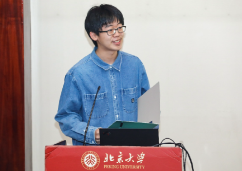随后,主持人宣读了获奖名单。每一个名字的响起,都伴随着现场热烈的掌声,这掌声既是对获奖同学的祝贺,也是对他们努力的认可。获奖学生代表陈昕阳和曹原同学分别上台发表了感言,分享了自己的获奖感受和在北大学习的体验。他们表示,感谢全力支持自己成长进步的老师,将倍加珍惜这份荣誉,不断努力学习,不辜负学院的期望。