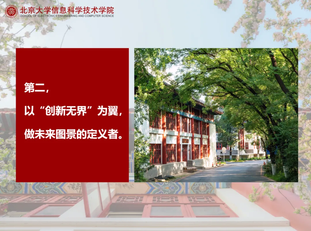 同学们,从今天起,你们将从“信科学生”转变为“北大信科校友”。但无论身份如何转换,理科一、二号楼的灯火永远为你们守候,“攻城狮”的微笑始终为你们绽放,大信科永远是你们的精神家园与坚强后盾!未来,当你在新燕园宿舍调试代码至深夜,当你在异国的实验室迎来曙光初现,当你在产业一线推动技术落地——请铭记,学院的目光始终追随,师长的祝福永远环绕,北大信科人的身份将赋予你不竭的力量!