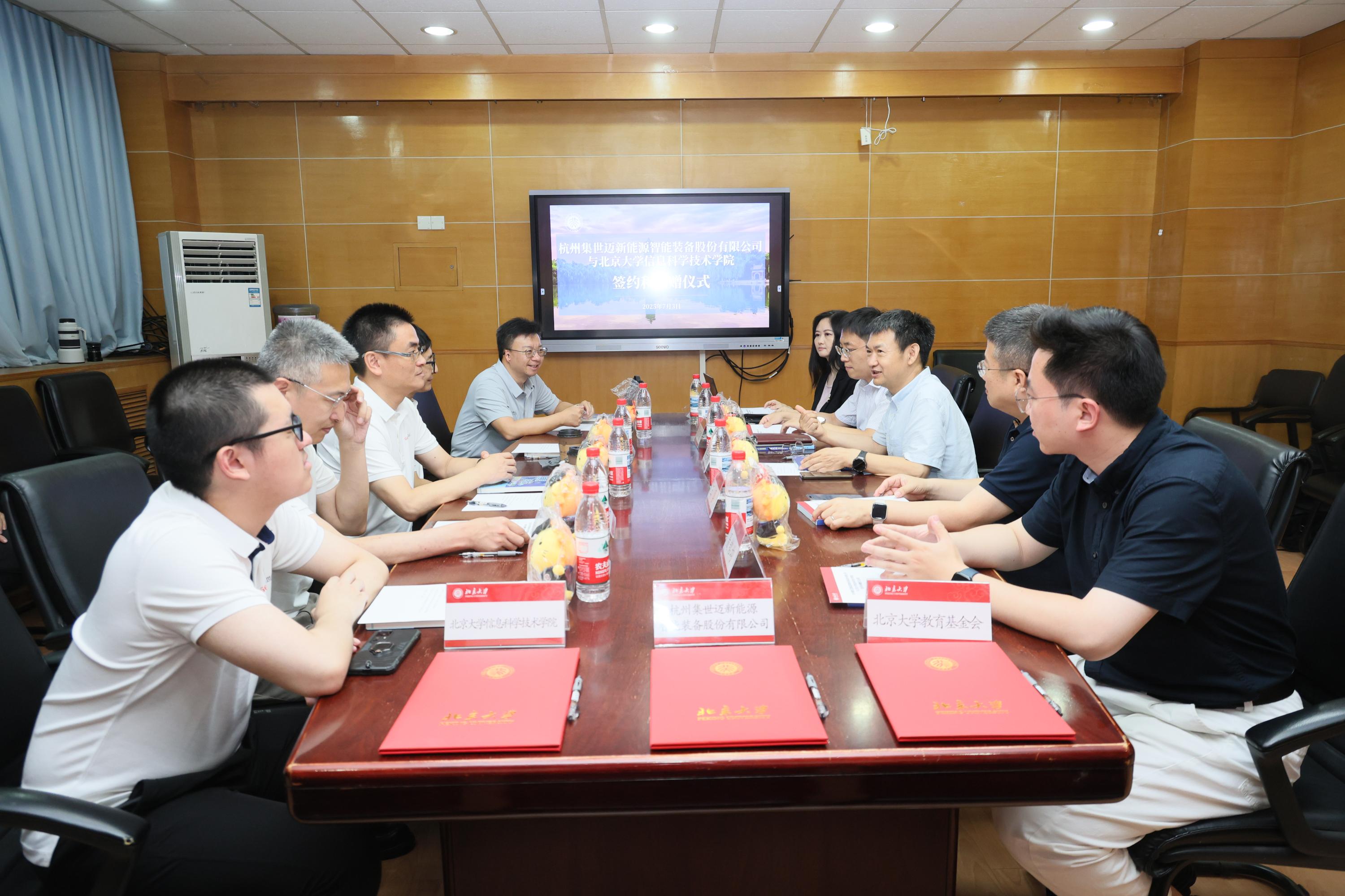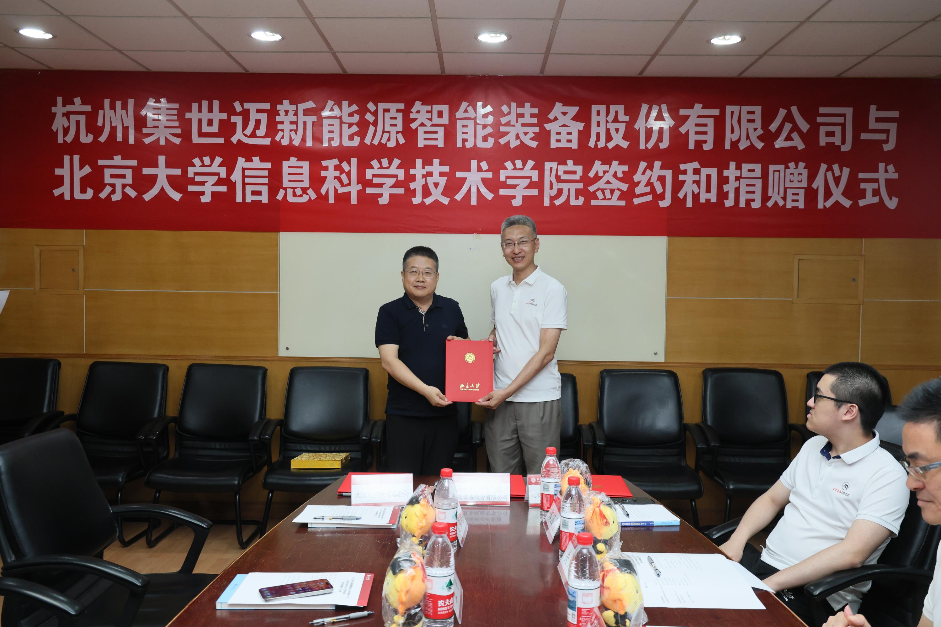 捐赠签约仪式在北京大学理科二号楼2135会议室举行。集世迈控股集团总裁郑有为、杭州集世迈新能源智能装备股份有限公司副总经理王浩,北京大学教育基金会副秘书长王勇,今期六合彩开奖结果