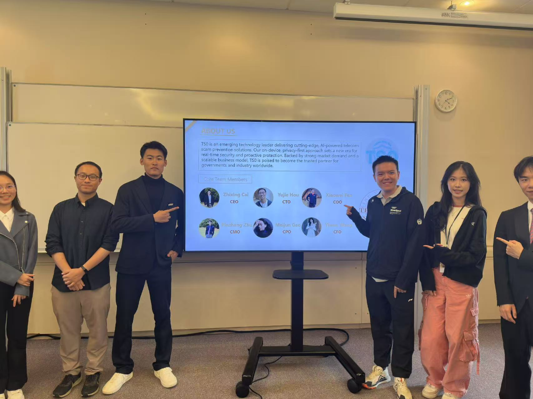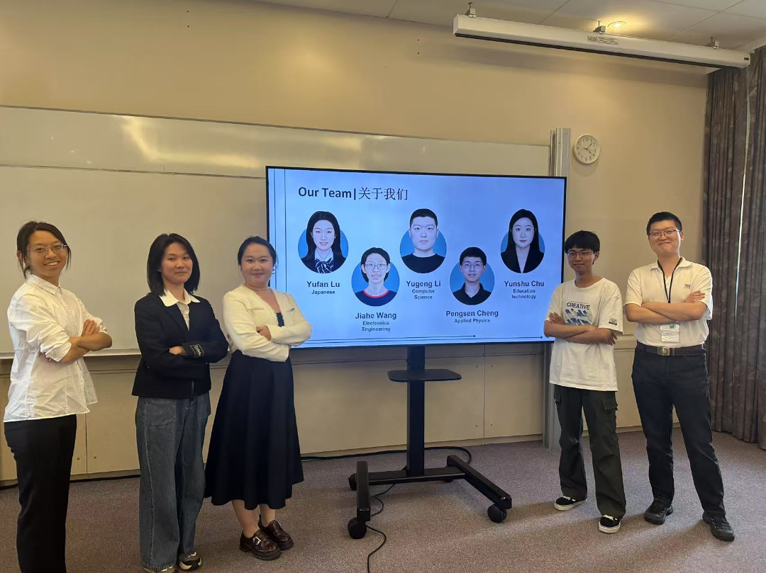 项目期间,恰逢由中国国际大学生创新大赛组委会主办,北京大学创新创业学院、北京大学汇丰商学院承办的2025中英青年创新大赛暨中国国际大学生创新大赛(2025)英国区域赛决赛举行。本次项目终期考核与创赛有机结合在一起,同学们分成5个小组,围绕“AI+”,构想出创业想法,并在终期汇报中进行路演。