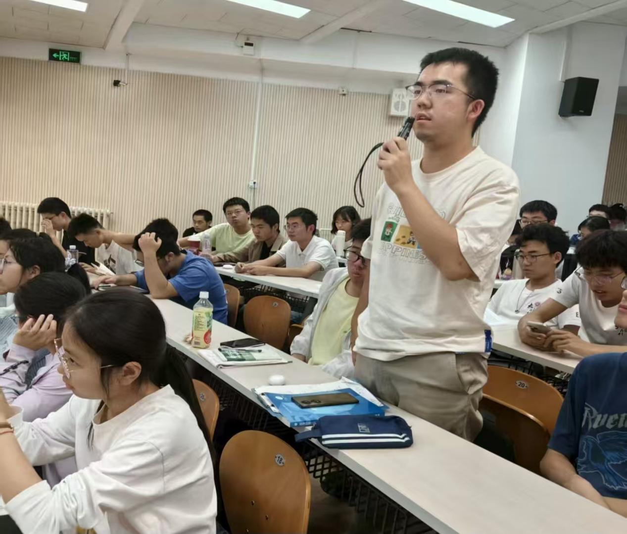 整场讲座兼具科学性和通俗性。一方面,王绍迪引用详尽的数据,展开了严谨的描述,借助编程、调试等具体情境,简要地介绍了向量乘矩阵的计算逻辑,科学而通俗地讲解了大模型计算需要巨量算力的根本原因,使同学们理解深入,印象深刻。另一方面,王绍迪通过运用具体事例,尽可能使讲座通俗易懂。如列举了机器人举起矿泉水的具体情境,描述了让机器人“感知”矿泉水瓶的重力,“体会”压力和摩擦力的过程中面临的诸多挑战,从而介绍了机器人智能开发中面临的困难,具体可感。