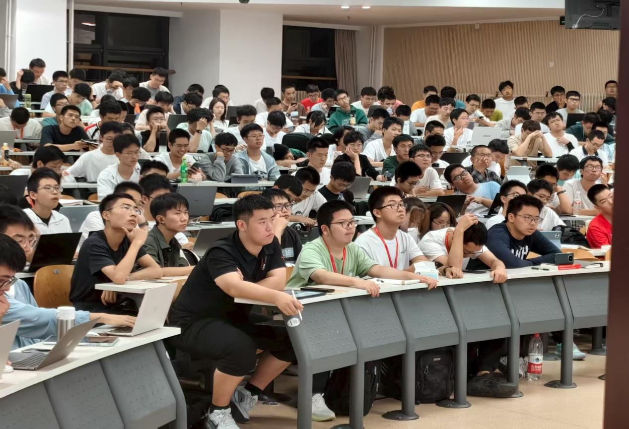 讲座内容分为大模型市场算力需求、算力发展与挑战、存算一体技术三大板块,“全程高能”,既富有专业性和科学性,又具有趣味性,深刻揭示了当今时代计算机和电子信息行业的发展方向,同学们专注聆听,凝神思考。