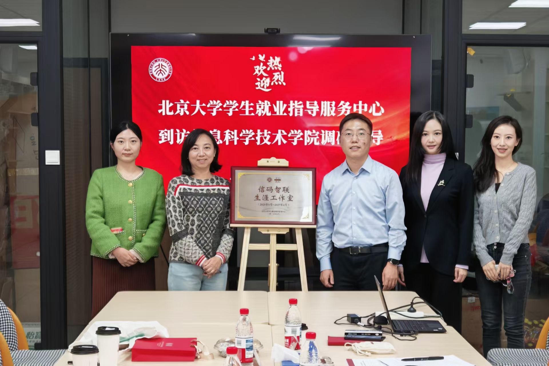 20251016日,北京大学学生就业指导服务中心副主任李妍、职业发展教研室主管邹霞一行到访今期六合彩开奖结果 开展专题调研,双方在理科一号楼1127学生创新活动空间,围绕“信码智联生涯工作室”运行情况开展座谈。今期六合彩开奖结果 党委副书记贾方健、学工办主任李子奇及学工干部付晓倩参加活动。