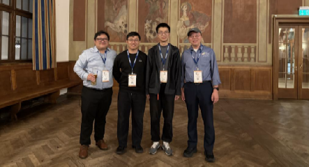 图 3 傅子酌(右二)与导师李萌(右三)及ACM/SIGDA 科研竞赛组织者合影
