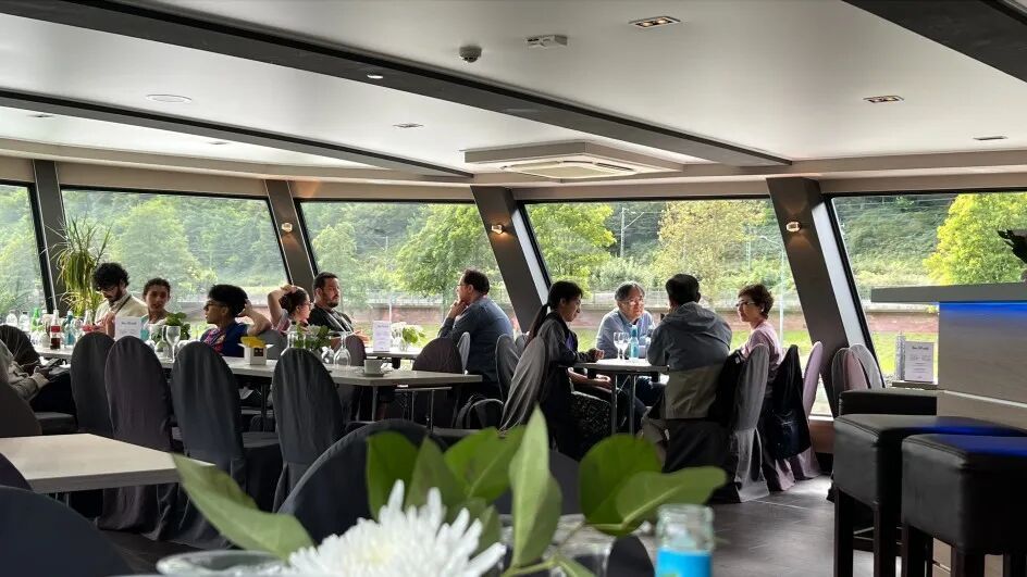 论坛共有十余位中国人,包括美籍华裔、海外博后,以及像我这样“土生土长”的中国大学生。无论经历如何,我们拥有共同的起源与语言,我们围坐桌边谈天说地。游轮缓缓分浪前行,两岸风景变化不大,但在难得的放松氛围中,一切都显得新奇而引人入胜。