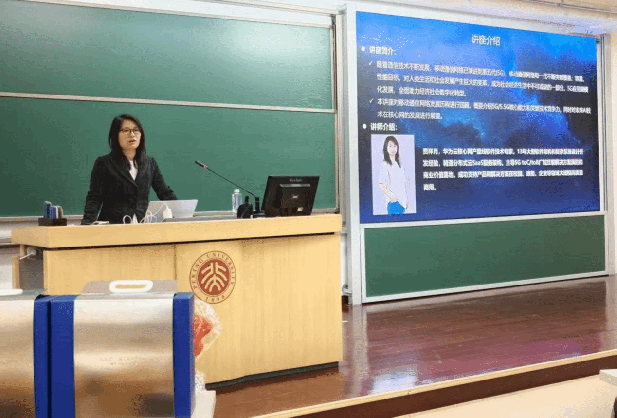 第四十七期“知存讲座”暨信息科学前沿与产业创新课程在理科教学楼107教室顺利举办。本次讲座主题为"5G/5G-A通信网络及未来AI技术展望",邀请华为云核心网产品线软件技术专家贾祥月老师担任主讲嘉宾。贾祥月拥有13年大型软件架构和复杂系统设计开发经验,精通分布式云SaaS服务架构,成功支持产品和解决方案在多个领域大规模高质量商用。本次讲座,她通过5G网络介绍、5G关键技术、5.5G关键技术、未来技术展望四个部分,回顾移动通信网络的发展历程,介绍5G和5.5G技术的核心竞争力,同时对未来AI技术在核心网领域的作用进行展望。讲座内容全面,易于理解,且包括丰富的互动环节,促进同学们深入了解移动通信网络的发展历程,也启发同学们结合所学知识思考5.5G相关通信技术的未来发展方向。讲座由电子学院舒浩文助理教授主持。
