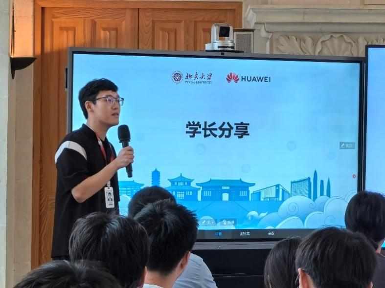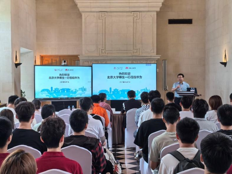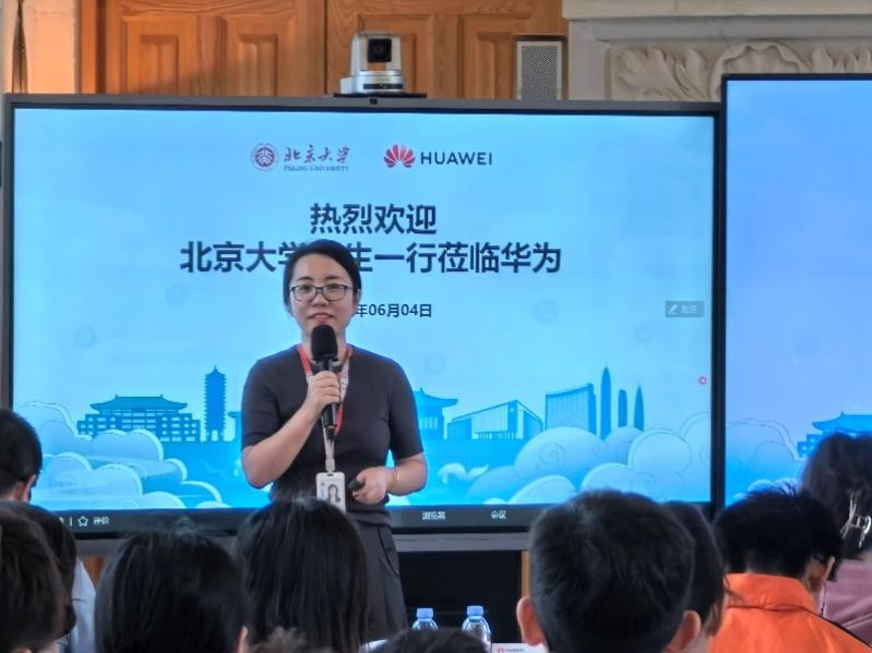 王松做开场致辞,欢迎北大师生们参访华为北研所,希望同学们以后积极参加华为和学校组织的各类活动。