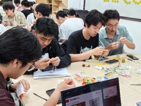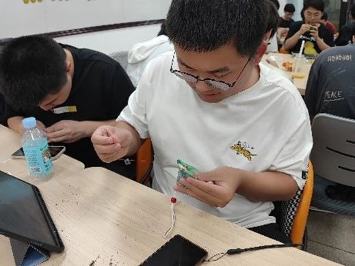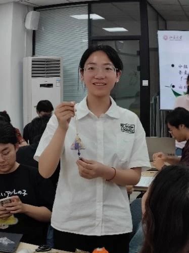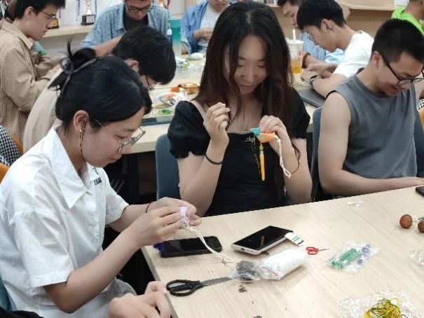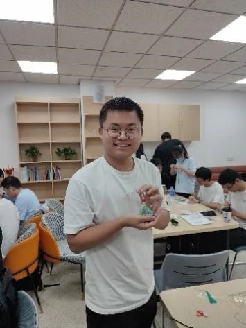 一番努力之下,不少同学成功制作出优质成品,部分同学虽然暂未完工,但手中香囊也初具雏形,, 展示出大家出众的创作能力与匠心。在最终的评比环节,第三小组的欧阳雨辰同学凭借出色的缝制技巧与令人惊叹的完成速度得到了大家的一致认可,获得了事先缝制的精美“柿柿如意”香囊作为奖品;第二小组的李劲松同学凭借制作精良的表情粽子香囊斩获第二名,第一小组的孙谱贺同学凭借高制作完成度的香囊夺得第三名,两组分别获得事先制作的精美国风香囊作为奖励。除此之外,其它小组成员也进行了如火如荼的制作,虽然遗憾落选,但各自的香囊中也倾注了自己的创造力与汗水,承载着过程的快乐和美好的祝愿。