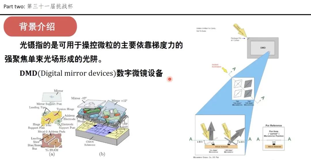 的梁芸同学分享了她“玻色爱因斯坦凝聚体中的新物态”和“超冷原子系统与DMD技术”的两项工作。在“玻色爱因斯坦凝聚体中的新物态”工作中,她从玻色-爱因斯坦凝聚体入手,以其为平台,通过大量的阅读文献和matlab的仿真模拟,总结出了一些可行的可用于在玻色-爱因斯坦凝聚系统中发现新物态的方法,然后借助Gross -Pitaevskaill(GP)方程,模拟了亮孤子在不同势阱中的动力学演化行为。在“超冷原子系统与DMD技术”工作中,她通过阅读相关文献资料,设计并搭建了DMD的成像光路系统;查找并选定了加权的格希贝格-萨克斯顿算法,并依据该算法的思路进行编程;之后将程序生成的全息图像输入DMD配套的软件,通过FPGA将读取到的二进制信息流输入DMD芯片,从而控制每个微镜的状态。通过后级光学系统的过滤,最终得到想要的成像效果。