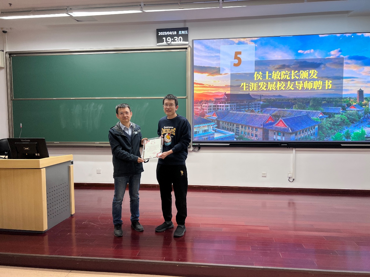 为了帮助同学们在职业生涯规划、行业前沿探索、求职就业拓展等方面提升认知、提高能力,助力同学们职业发展和成长成才,北京大学启动了学生生涯发展校友导师计划。信科2014届本科、2019届博士郑子杰是学院推荐聘任的首批导师之一,院长侯士敏为其颁发导师聘书。郑子杰院友结合自身经历,以“我在中学从事基础教育”为主题,真诚分享了自己的在校经历和职场故事,为即将面临生涯选择的同学们提供启发。