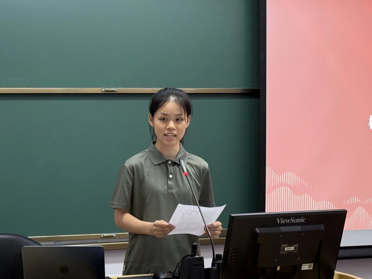 2025级本科新生杜沁芳作为参训学生代表发言。她分享了自己对军训收获的三个期待:一个更坚强的灵魂,通过军训塑造“精神上的了不得”;收获更深厚的友谊和集体的归属感;强化党、国家和时代召唤的使命感。最后,她代表全体同学郑重表态,将服从命令、刻苦训练,发扬“流血流汗不流泪,掉皮掉肉不掉队”的精神,向学校和祖国交上一份优异的青春答卷。