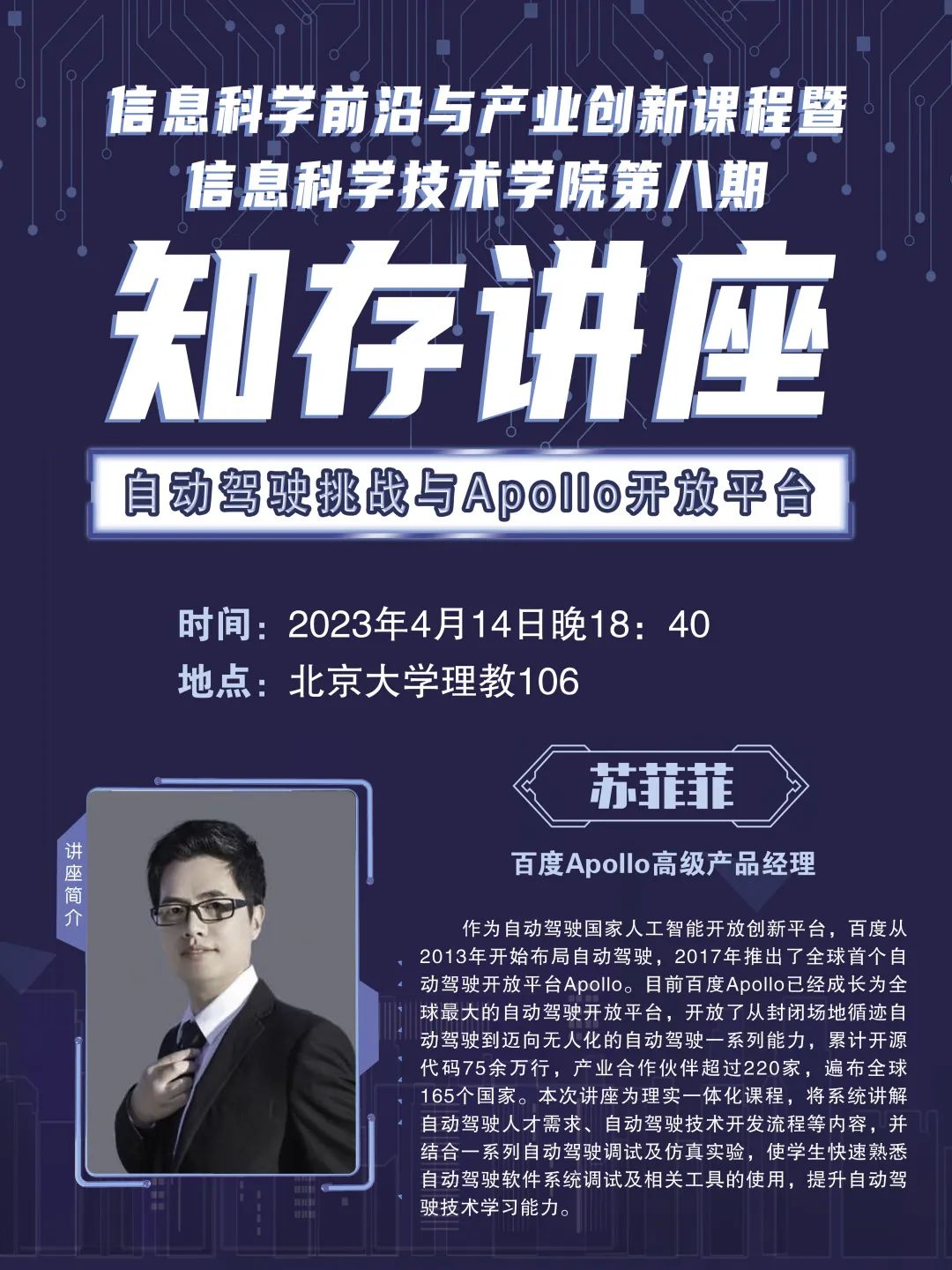 讲座举办时间:4月14日(周五)晚18:40